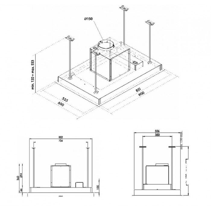 Die integrierte Randabsaugung sorgt für eine effiziente Erfassung von Kochdünsten bei gleichzeitig leisem Betrieb. Mit einer maximalen Förderleistung von bis zu 850 m³/h eignet sich die Dunstabzugshaube ideal für größere Küchen und auch für Kochinseln mit größerem Abstand zur Kochfläche.