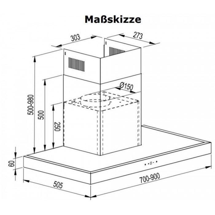 - Das Modell CH 5001 ist eine Edelstahl Flachpanell Wandhaube mit leistungsstarkem Motor