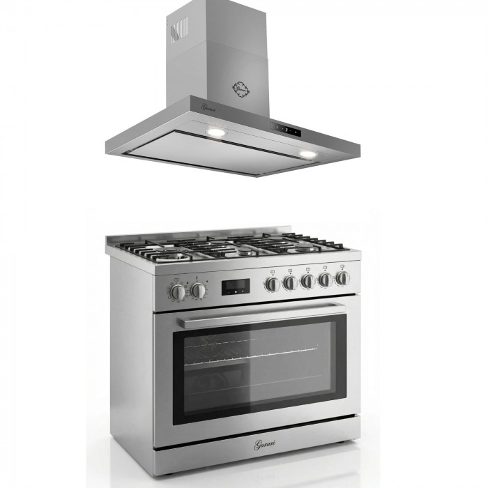 Gurari Gas-Standherd GCH E 818 X Edelstahl Gas Elektro Standherd 90 cm 126 L +CH 5001 Dunstabzugshaube 90 cm,Edelstahl, Glas, 1000m³/h