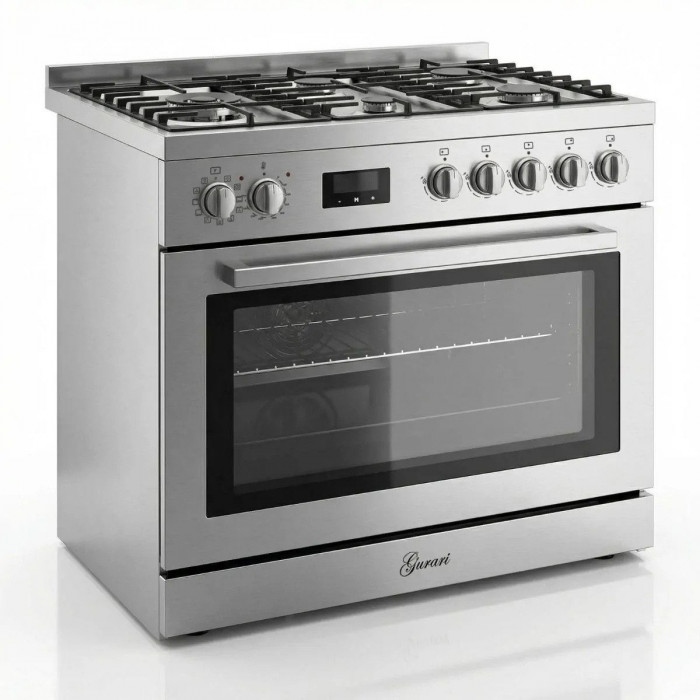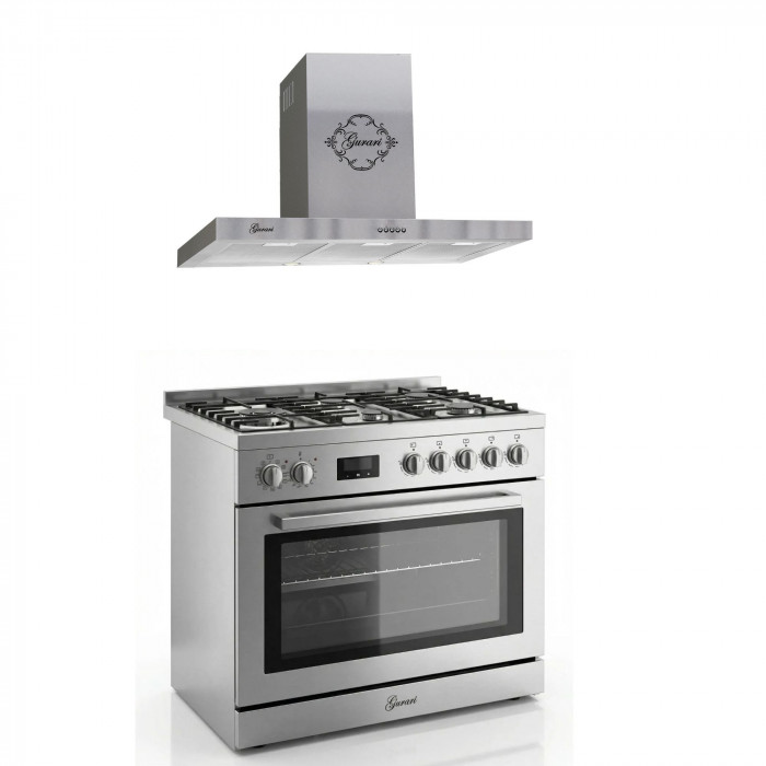 Gurari Gas-Standherd GCH E 818 X Edelstahl Gas Elektro Standherd 90 cm 126 L +GCH 461 IS 9 Dunstabzugshaube 90 cm, 1000m³/h, Edelstahl