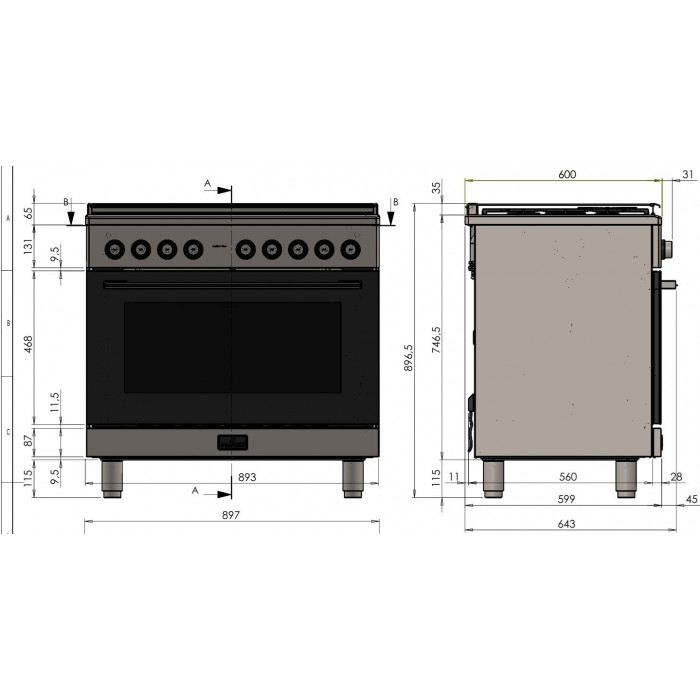 Der Herd überzeugt durch sein hochwertiges Edelstahlgehäuse (Inox) und steht für echte Premium Qualität. Die robuste Verarbeitung sorgt für Langlebigkeit, Stabilität und eine elegante Optik in jeder modernen Küche. Edelstahl ist nicht nur besonders widerstandsfähig und pflegeleicht, sondern verleiht dem Gerät auch ein professionelles Design auf höchstem Niveau.