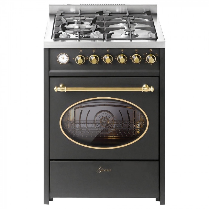 Gasherd mit Elektrobackofen Gurari GCH E 614 BL r – Retro Standherd in Schwarz (60 cm)